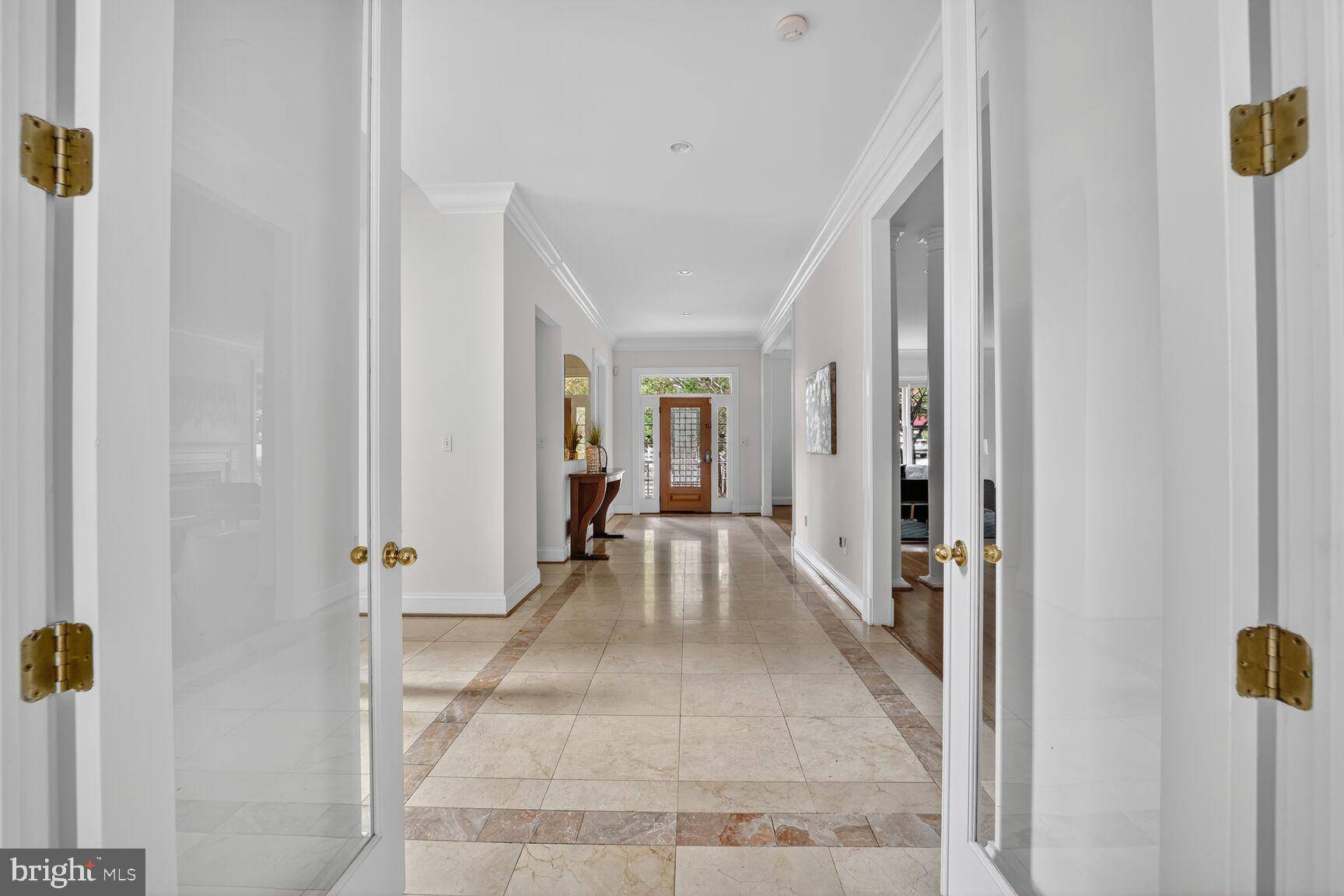 This quintessential six-bedroom home with fabulous vistas in all directions is accessed by an inviting front porch with sweeping sunset views. A marble entry foyer leads to the formal Living Room w/ Fireplace, formal Dining Room, and opens to the expansive Gourmet Kitchen and Family Room w/ Fireplace, with French Doors to the rear deck, which overlooks the mature tree canopy and Rear Grounds. A Home Office with custom mahogany built-ins and floor to ceiling windows also enjoys Reservoir views. A powder room completes this level.